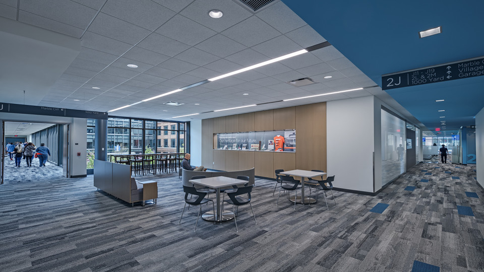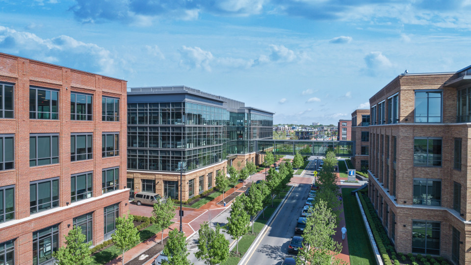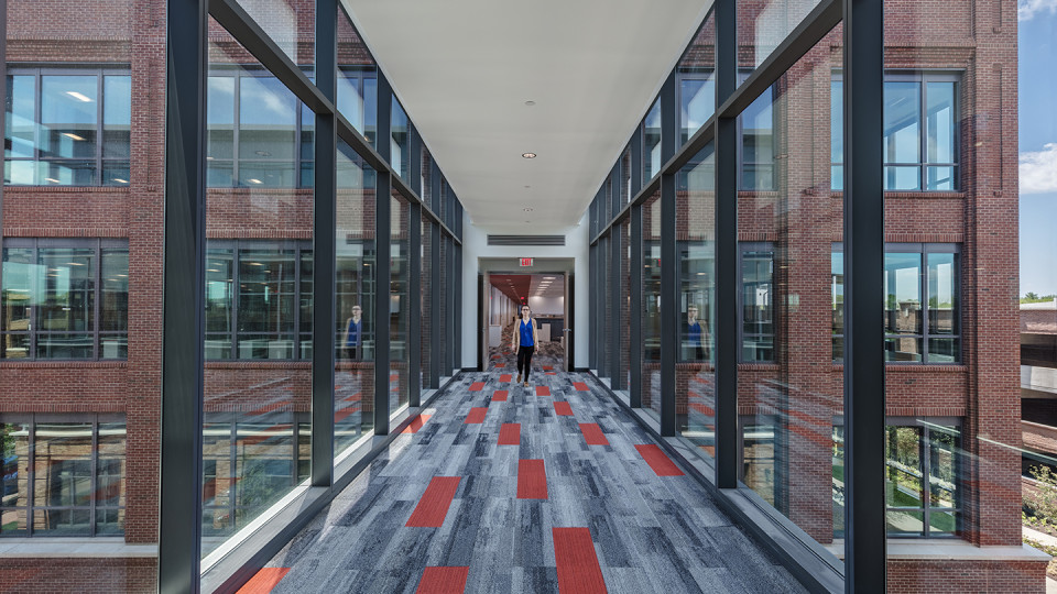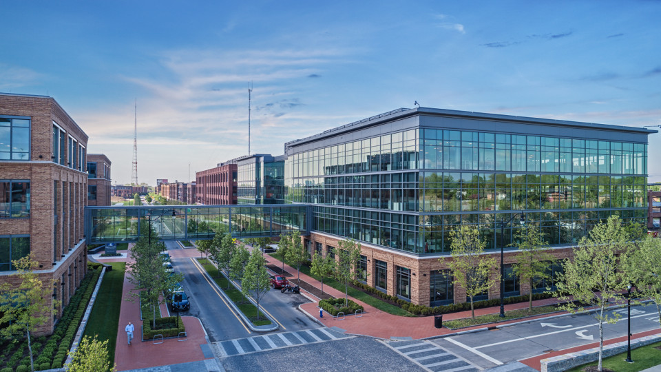 New four-story corporate office in two buildings known as 'Building W'. This project totals 255,000 SF and has a glass pedestrian connector between the buildings. Additionally, the north structure has a pedestrian bridge that connects to ‘Building H’ (a project also completed by Continental) and both buildings connect to a parking garage. The exteriors include brick, limestone and glass and are consistent with the design of our past projects at The Yard.